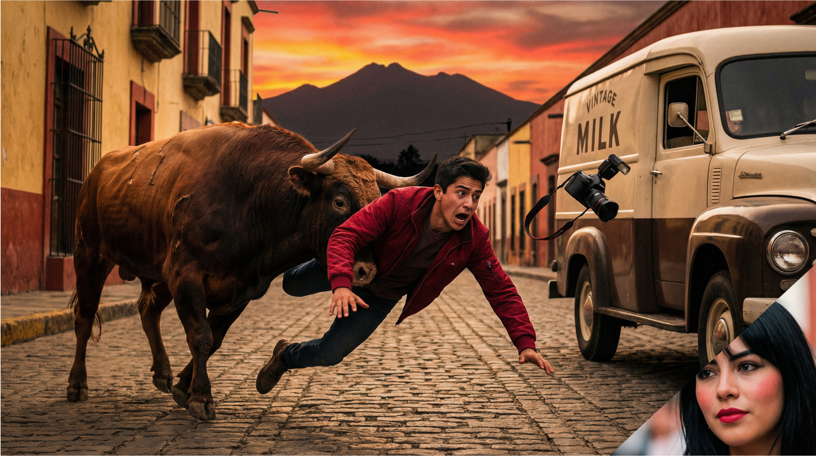 —¡Soo! Toro, soo! —Gritaba don Javier para tratar de calmar al animal, pero solo vio cómo el hombre con la cámara fotográfica fue lanzado por los aires. Cayó sobre el cofre de un carro, rompiendo el parabrisas. La cámara voló por los aires y tocó el suelo justo cuando pasaban las llantas del carro de un lechero.