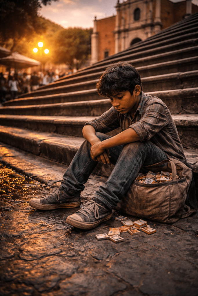 —Sentado en las escalinatas, confundo y enojado miraba mis zapatos y hacía muecas tratando de no ver, tratando de escapar; rotos y enzoquetados descansaban al fin un poco del tianguis. Como mis zapatos era toda mi historia: corta. Estaba en el sexto año y llegué lejos. Ni sé nada del año, ni había clases. Mi tía me llevó a la graduación un ramo de gladiolos con flor de nube y me regaló un reloj de los “pica piedra”, tuve que bailar el vals con todo y pena, la canción de las “golondrinas” no la escuchamos bien porque estaba rayado el disco. — ¿Pensar en la secundaria? Mi mamá apenas tiene para que comamos y mi padre se la pasa de guevón y pulqueando con sus compadres; a mí no me queda otra más que seguir vendiendo cerillos, de ahí sale para el colectivo, las tortillas, y no voy a decir que no, también me alcanza para las “maquinitas”. —A mí me preocupa que no tengamos dinero, soy el mayor de mis hermanos y ya viene el otro. Parece que mi Padre no entiende, le dice a mi mamá que usar condones es anticristiano y eso lo dice el santo papa, y además que van a decir los compadres… que parece que están haciendo la competencia para ver quien le saca más a la “vieja”. Ya no sé qué cosa. Mis amigos del mercado, el “bolas” y “el traste” me invitan para que nos juntemos con otros cuates y echarnos el cigarrito y las “chelas”, ya sé que eso me conduce a ser uno igual a mi padre, o peor, que tal si la pruebo, es decir la “buena” y después me gusta, y con el tiempo quedo igual que Mateo… Perdido, perdido. —Ya no sé qué cosa, me lo vuelvo a repetir muchas veces, tal parece que a todos los de mi colonia les cayó la misma maldición que a mí, la mayoría anda con los zapatos jodidos, llenos de lodo, y no salimos de una cuando ya caímos en otra; a todos nos agarra por temporadas la diarrea, la gripa y hasta el fut-bol; parecemos herramienta de la moda, pero de aquella que agarra parejo aunque uno no quiera —Quién sabe que ha de significar el soñar escaleras, pero no el que uno vaya para arriba, sino el que descendamos de las escaleras más allá del suelo. Eso soñé ayer, y por eso estoy aquí, en las escalinatas; viendo mis zapatos rotos y enlodados, con el costal de cerillos empapado y la mercancía echada a perder. Por aquí han pasado unos “chavos bien” con tenis famosos… y de aire, embotarse de esos ha de ser la pura vida. Al bajar el último peldaño, resbala por el exceso de lodo en los zapatos perdiendo el equilibrio, y cae hundiéndose hasta el pecho en la alcantarilla abierta desde donde fluye hacia arriba como fuente, el agua del drenaje. Los cerillos se esparcen por la calle y son atropellados por los urgentes autos.