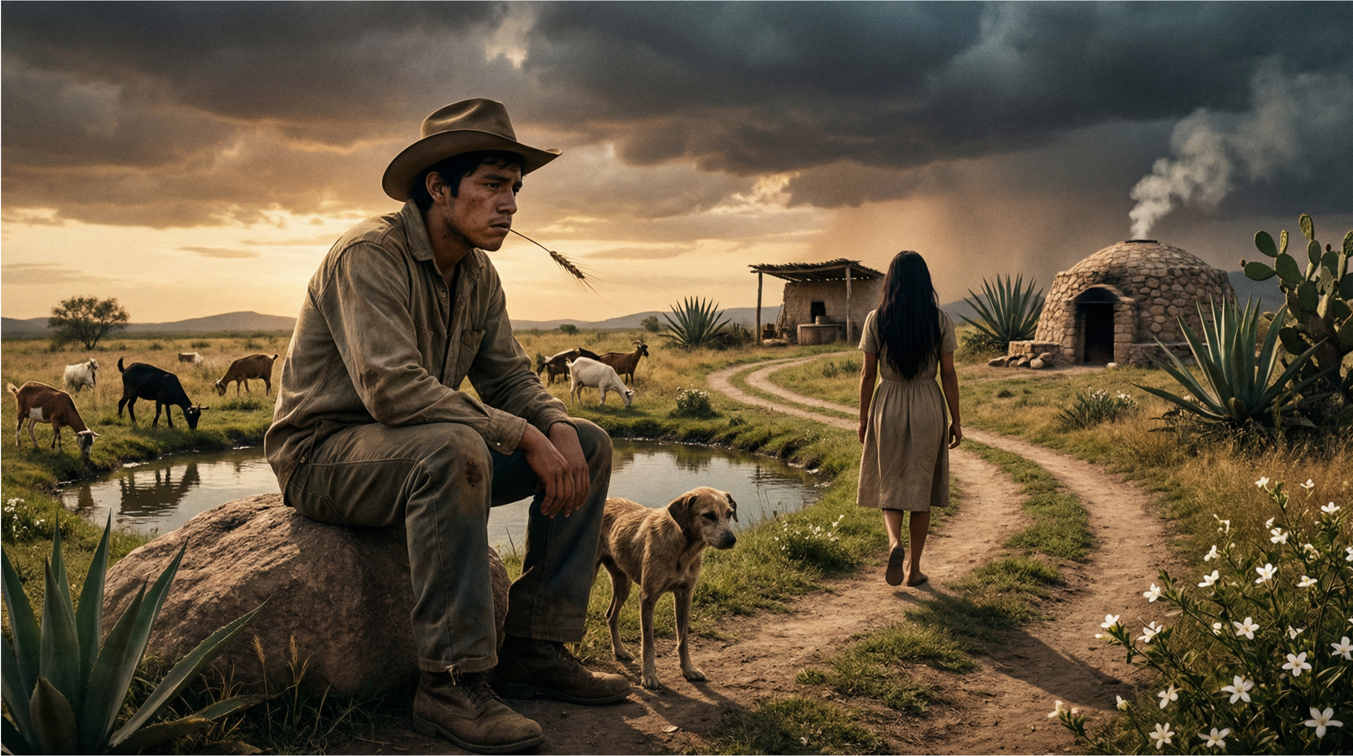 Carmelo se quedó pensativo, queriendo reanudar la reciente plática. Chupaba un tallo de trigo silvestre entre los dientes, masticándolo de manera inconsciente. Su pantalón, con olor a chivo, se confundía con el hedor a ganado que lo envolvía. Con un fuetazo despabiló al ganado para dirigirlo a la lagunilla; los animales bebieron hasta el hartazgo. Carmelo seguía recordando que la invitación a bañarse en el temazcal había sido un fracaso; tal vez Dalia pensaba en los temores de la primera vez. El noviazgo, la relación amorosa de apenas unos meses, tenía que cruzar el puente de la reconciliación o terminarse. Un mierdero quedó en la ribera, cerca del agua, sumándose al incontable excremento depositado en tierra, copioso, nutrido de moscas, esparcido por las bestias domésticas.