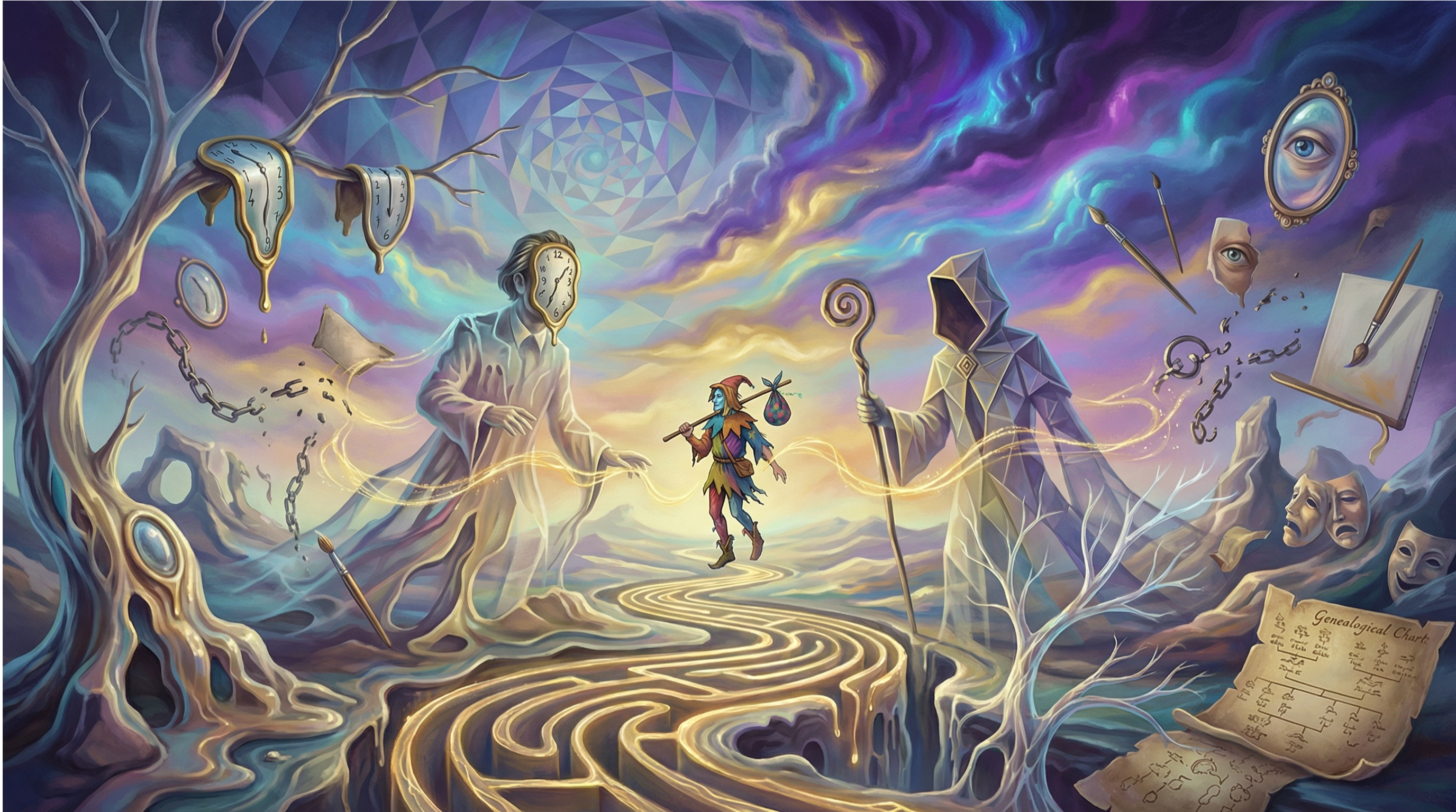 Ambos, Dalí y Jodorowsky, son dos insubordinados ante el destino preescrito. Dalí rompe con su padre y con la sombra de un hermano muerto para forjar su propia identidad. Jodorowsky se inventa un pedigrí y desentraña su psique para liberarse de las cadenas ancestrales. En este sentido, ambos encarnan la figura del «loco» del Tarot, ese arcano que avanza sin miedo hacia lo desconocido, libre de las convenciones sociales. Como afirma Jodorowsky, «los pájaros nacidos en una jaula creen que volar es una enfermedad». Dalí, a su manera, también nos incita a volar más allá de la jaula de la razón, declarando que «el genio tiene que pasar por encima de la locura y la locura por encima del genio».